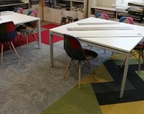 Двух этажное здание с мансардой, бирюзового цвета, с собственной территорией.Периметр отделен черным ограждением. Вход со стороны двора. При входе табличка UnionMart. Звоните в колокольчик и проходите на ресепшен, на первом этаже,Вас встретят. Описание проезда вы можете найти внизу страницы.